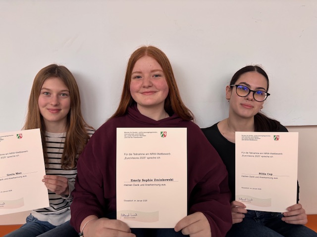 In diesem Schuljahr haben drei engagierte Medienscouts des GHM erfolgreich am NRW-Landeswettbewerb „EuroVisions – Checkst du?! Aktiv gegen Fake News in Europa!“ teilgenommen. Der Wettbewerb richtet sich an Schülerinnen und Schüler und lädt dazu ein, sich kreativ mit dem hochaktuellen Thema Desinformation und Fake News auseinanderzusetzen.
