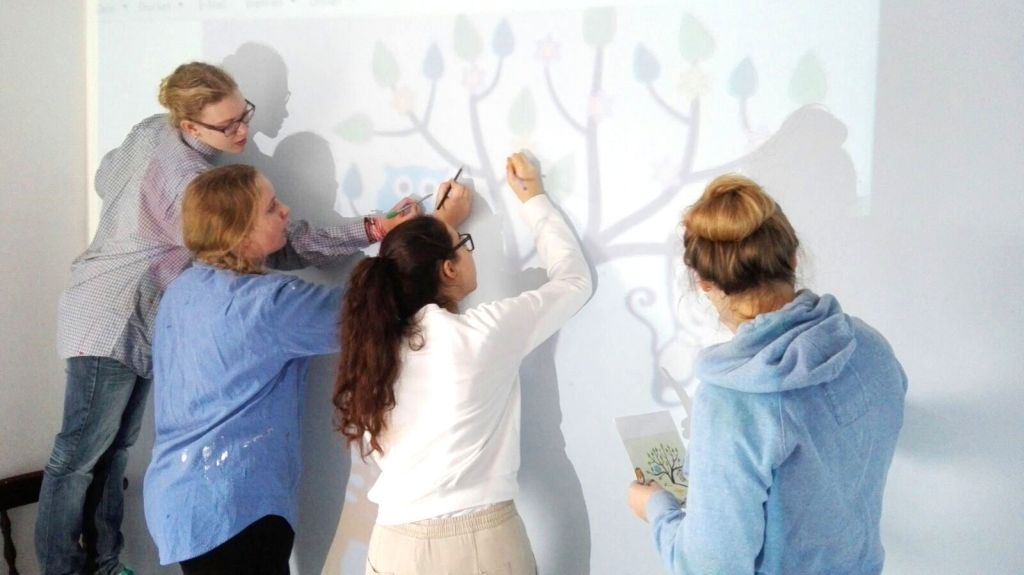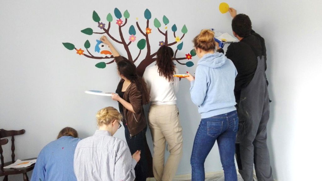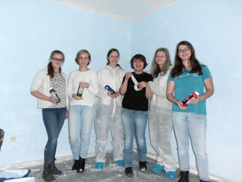 Wir haben uns überlegt als erstes großes Projekt, den Flüchtlingen in unserem Umfeld zu helfen. Wir nahmen Kontakt mit Philipp Nikodem auf. Er ist als Sozialarbeiter der Stadt Menden verantwortlich für die Flüchtlinge in Lendringsen und Oberrödinghausen. Gemeinsam mit Philipp Nikodem besuchten wir zwei Flüchtlingswohnheime und wurden dort sehr herzlich empfangen. Wir entschlossen uns einen Spielbereich für die Kinder zu gestalten, damit sie auch im Winter, wenn es draußen zu kalt ist, einen schönen Platz zum Spielen haben. Uns wurden Farben für die Wände zur Verfügung gestellt, so dass wir die Kosten nicht selbst tragen mussten. Insgesamt waren wir drei Mal im Flüchtlingswohnheim um die Wände zu streichen. Aus einem komplett weißen, kahlen Raum haben wir ein schönes Spielzimmer gemacht. Die Kinder, die in dem Haus leben, haben uns geholfen, was ihnen auch sehr viel Spaß gemacht hat. Außerdem durften sie sich auf einer der Wände mit ihrem Handabdruck verewigen. Dann haben wir das Zimmer mit Möbeln eingerichtet und den Kindern Spielsachen aus unserer Kindheit mitgebracht.