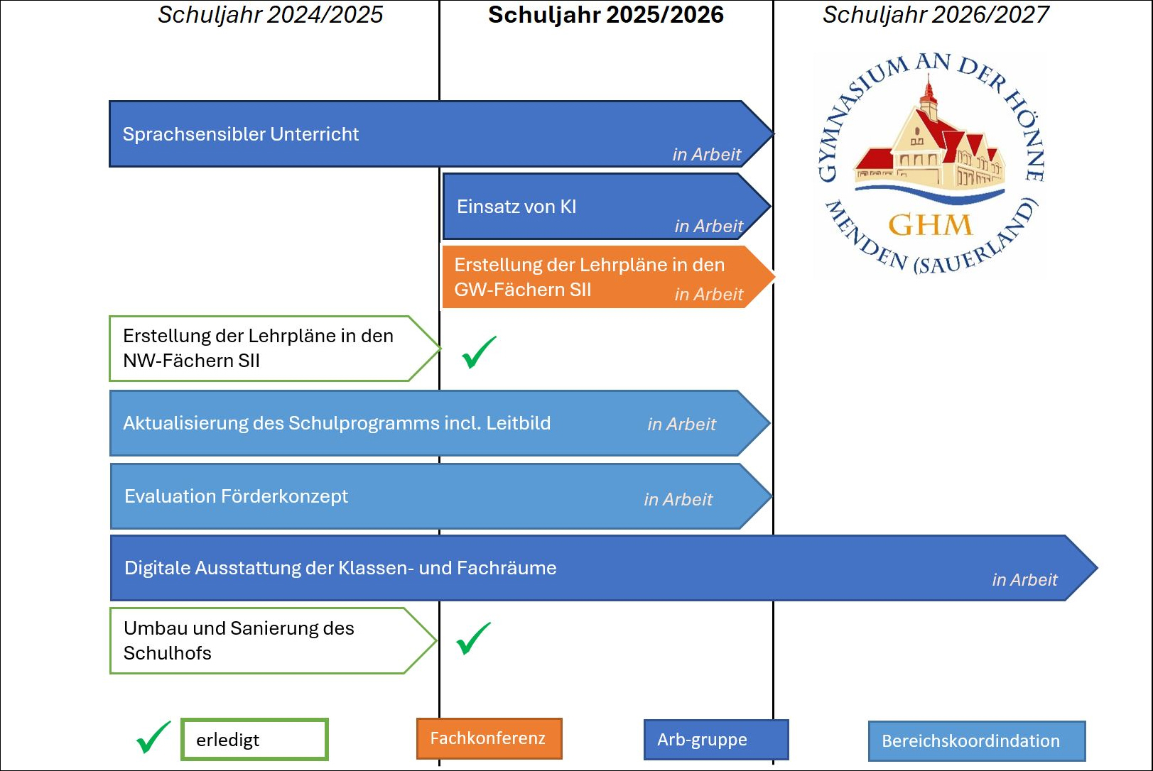 Die stetige Weiterentwicklung des Gymnasiums an der Hönne ist eines unserer zentralen Anliegen und somit einer der Schwerpunkte unseres Tuns. Dabei ist es unser Ziel eine zukunftsfähige Schule zu bleiben, die den Anforderungen aller an Schule Beteiligten gerecht wird.