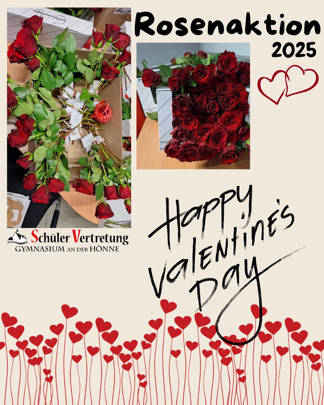 Am Städtischen Gymnasium an der Hönne Menden hat auch dieses Jahr wieder traditionell zum Valentinstag eine Rosenaktion, organisiert von der Schülervertretung, stattgefunden. Schülerinnen und Schüler konnten eine ganze Woche vorher Rosen für ihre Liebste bzw. ihren